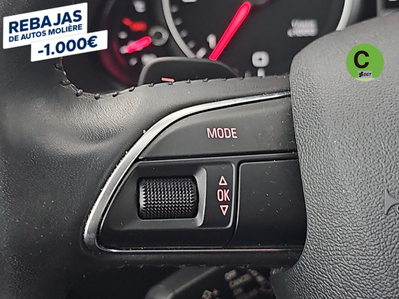 - Volante multi-función revestido de cuero ajustable en altura y en profundidad