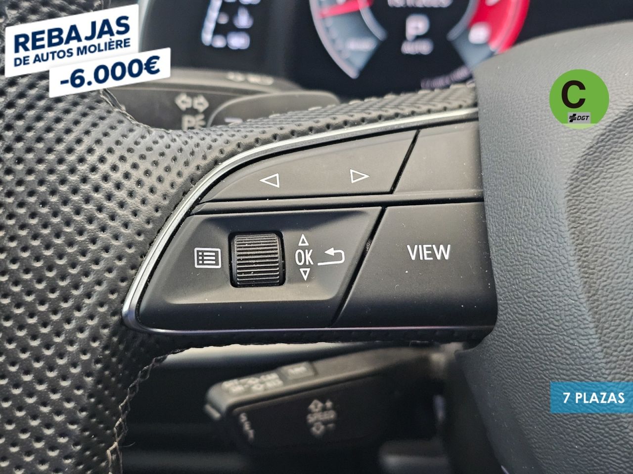 - Volante multi-función revestido de cuero ajustable en altura y en profundidad