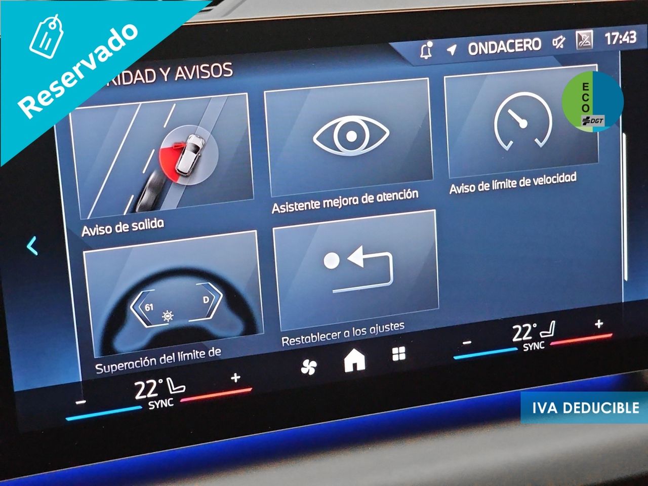 - Sistema de ventilación con pantalla digital, filtro de pólen y filtro de carbón activo controles en pantalla táctil y calefacción del motor