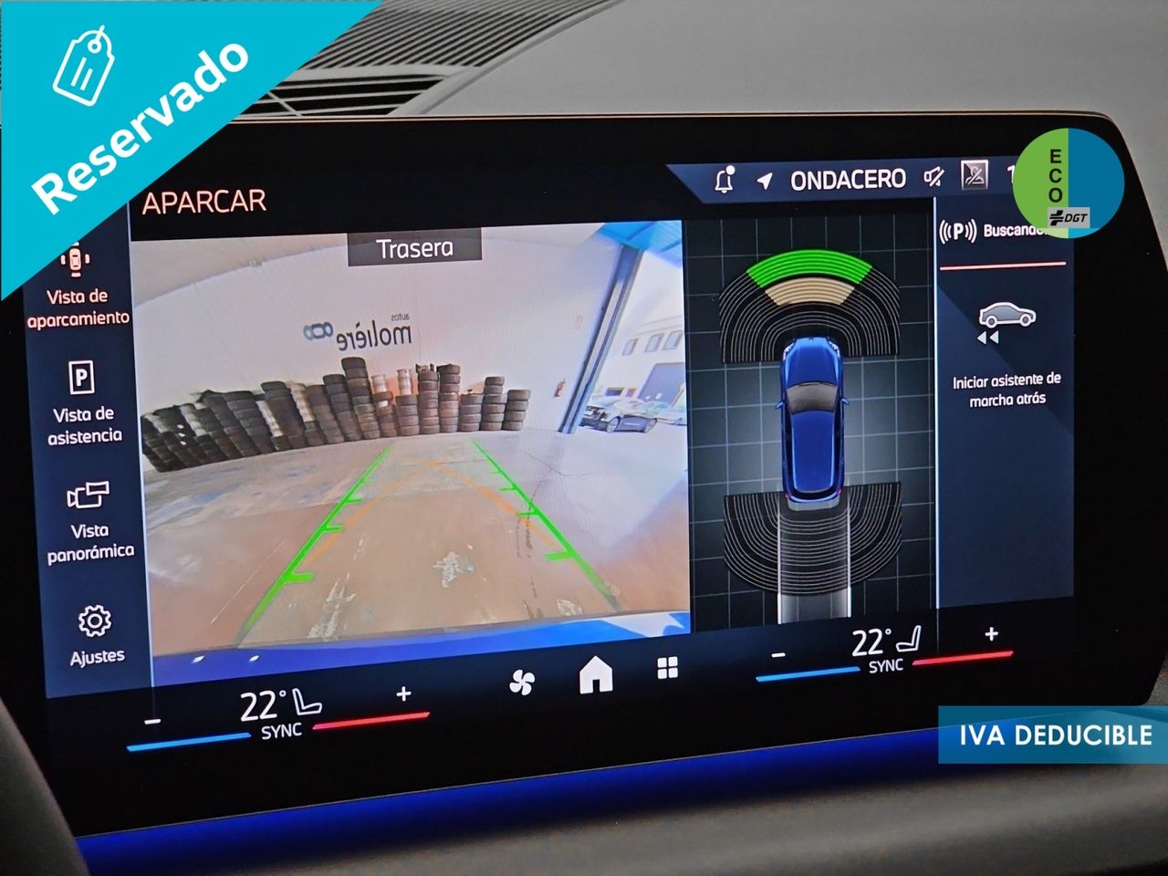 - Sistema de distancia de aparcamiento delanteros con sensor, sistema de distancia de aparcamiento traseros con sensor y cámara, sistema de distancia de aparcamiento en los lados con sensor