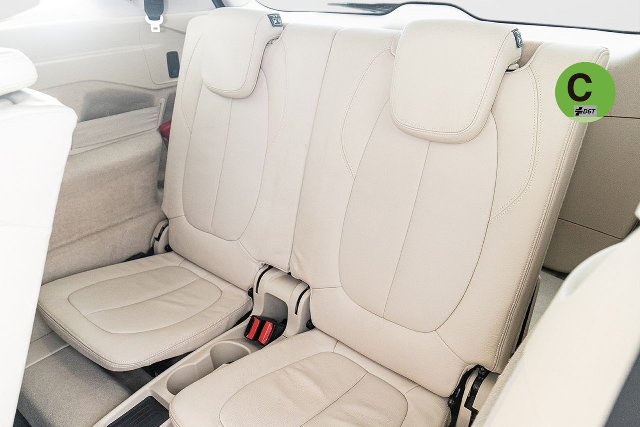 - Asientos traseros de tres plazas de tipo banco partido de orientación delantera ajuste longitudinal manual con banqueta fija, respaldo abatible 40/20/40 y ajuste manual del respaldo con plegado remoto y eléctrico