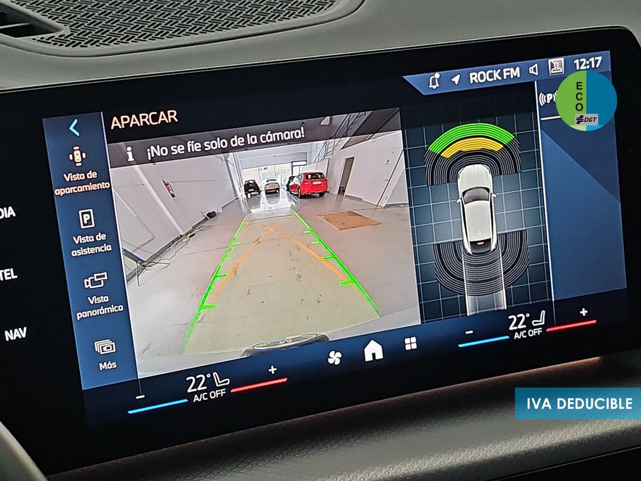 - Sistema de distancia de aparcamiento delanteros con sensor, sistema de distancia de aparcamiento traseros con sensor y cámara, sistema de distancia de aparcamiento en los lados con sensor