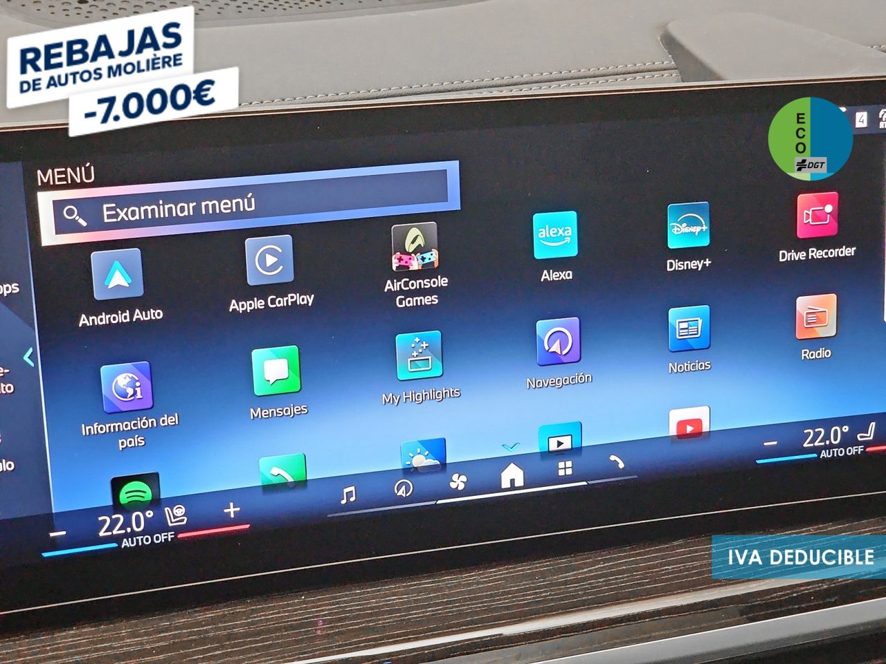 - Sistema de ventilación con filtro de carbón activo controles en pantalla táctil y calefacción del motor