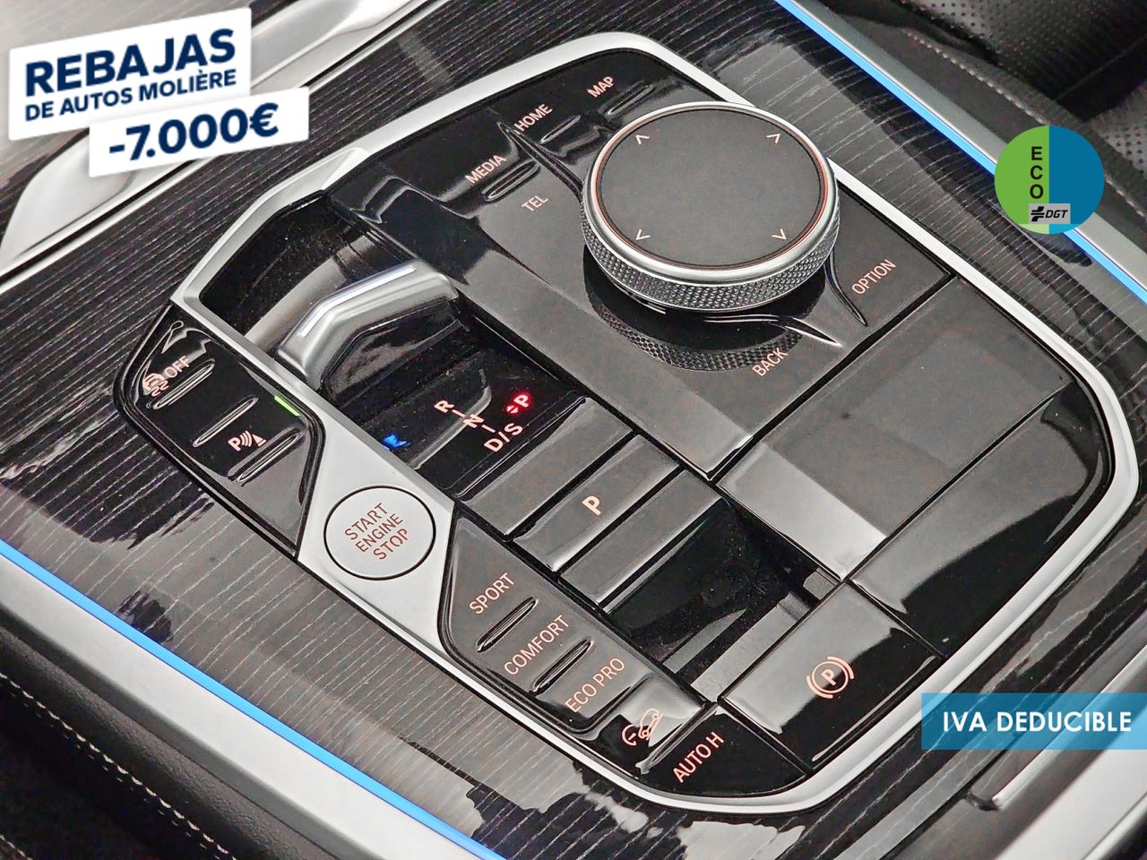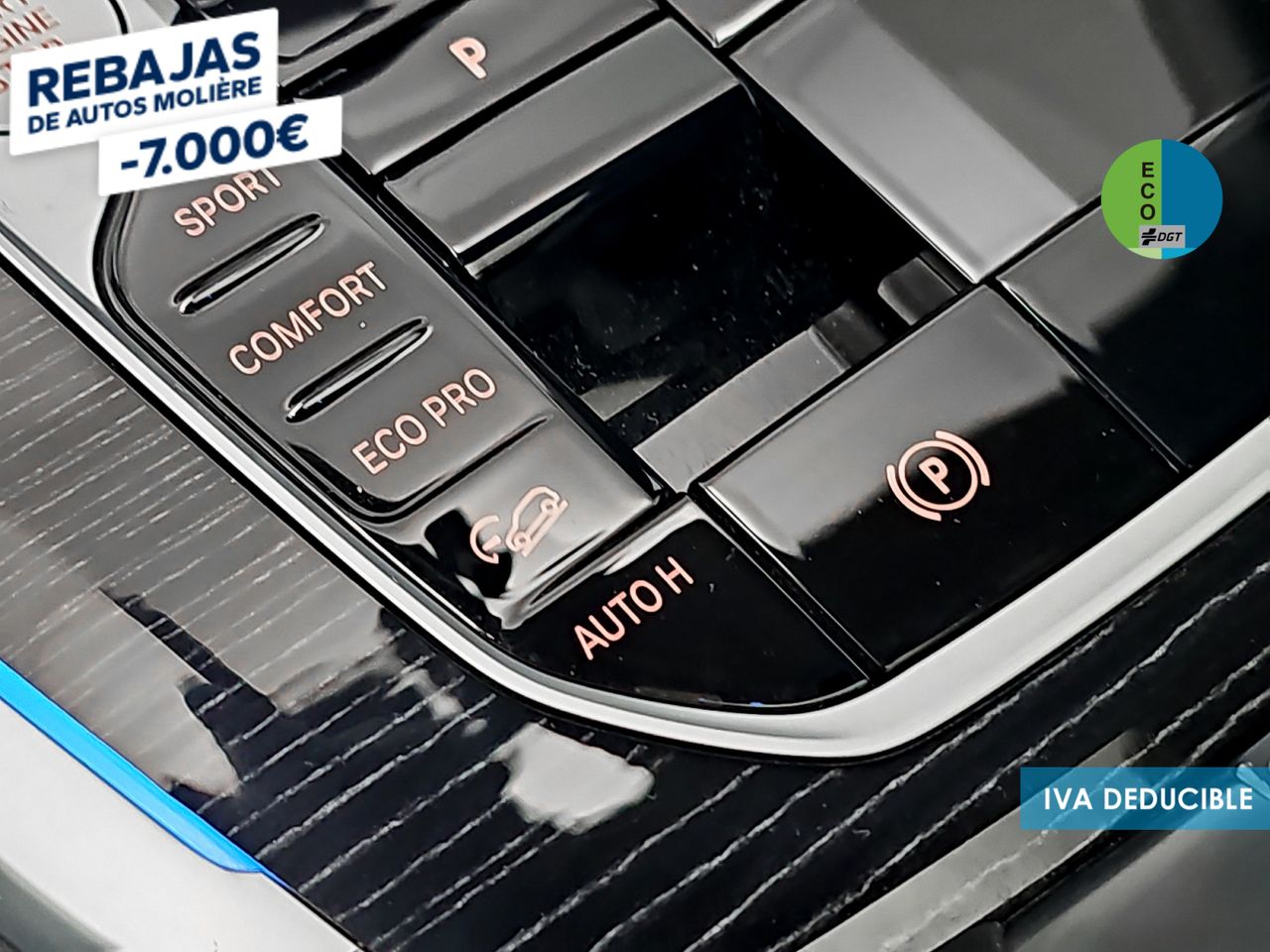 - Acabados de lujo: pomo de la palanca de cambios en negro piano, consola central en madera o símil madera, puertas en cuero y tablero en madera y aluminio
