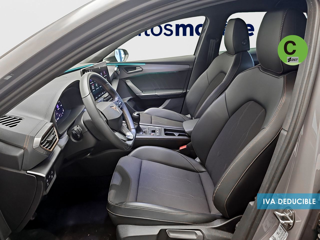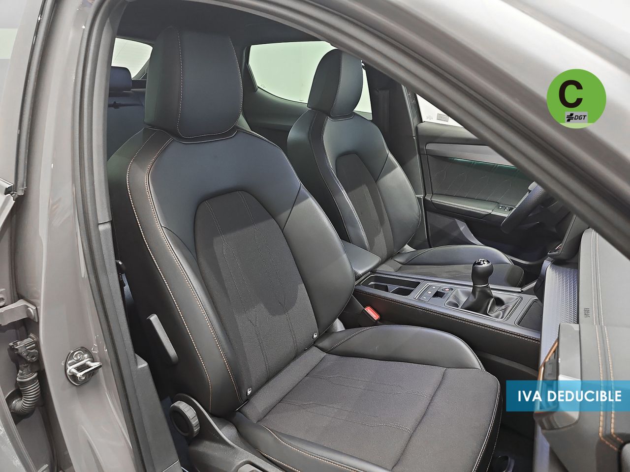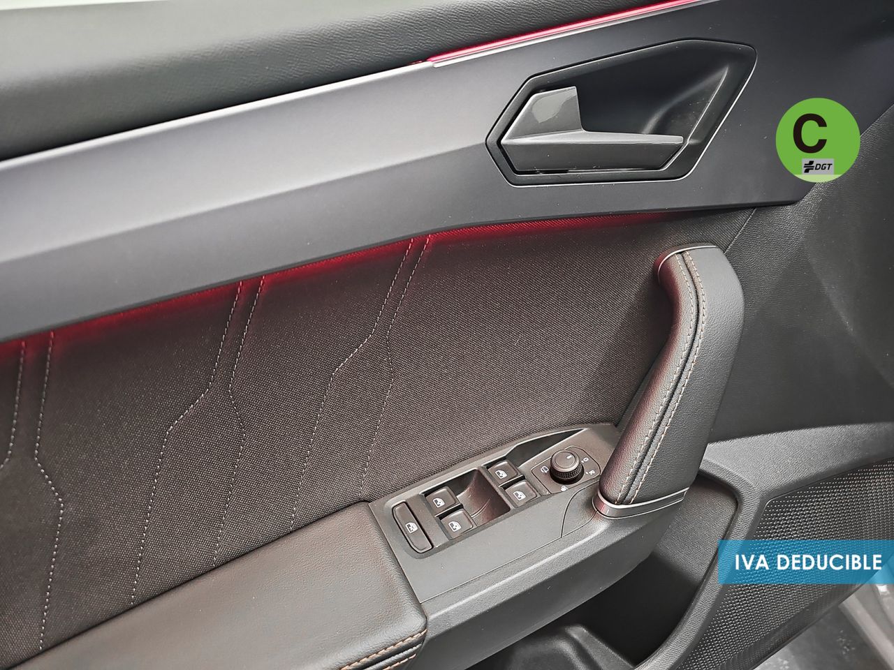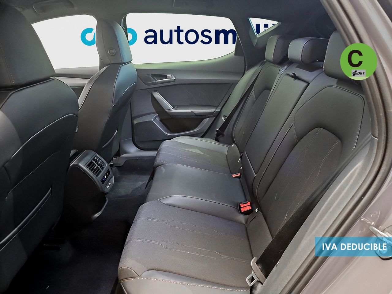 - Asientos de tela (material principal) y de cuero sintético (material secundario)