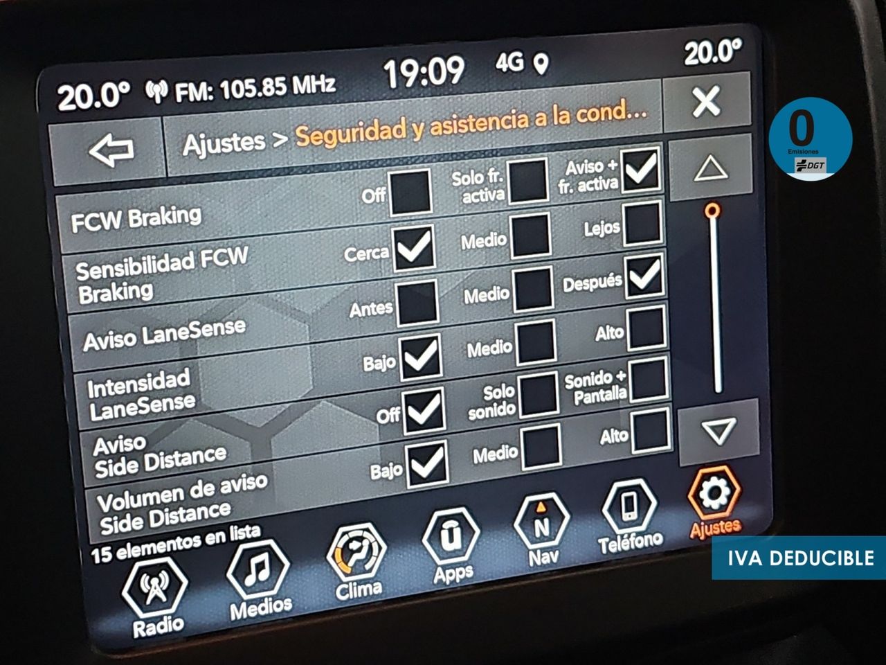 - Sensores de aparcamiento delanteros con radar, sensores de aparcamiento traseros con radar y cámara