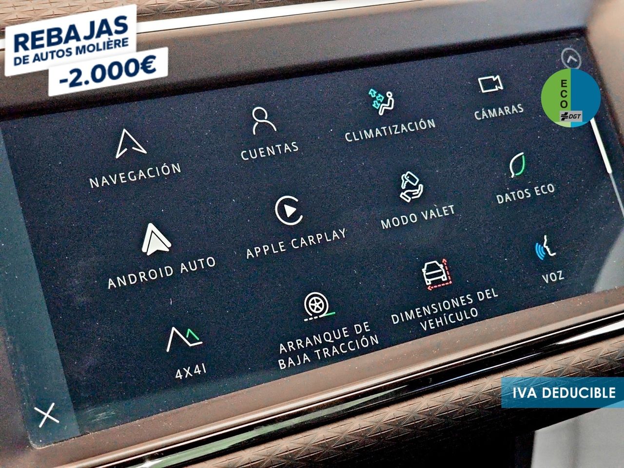 - Sistema de ventilación con pantalla digital y filtro de pólen controles en pantalla táctil y calefacción del motor