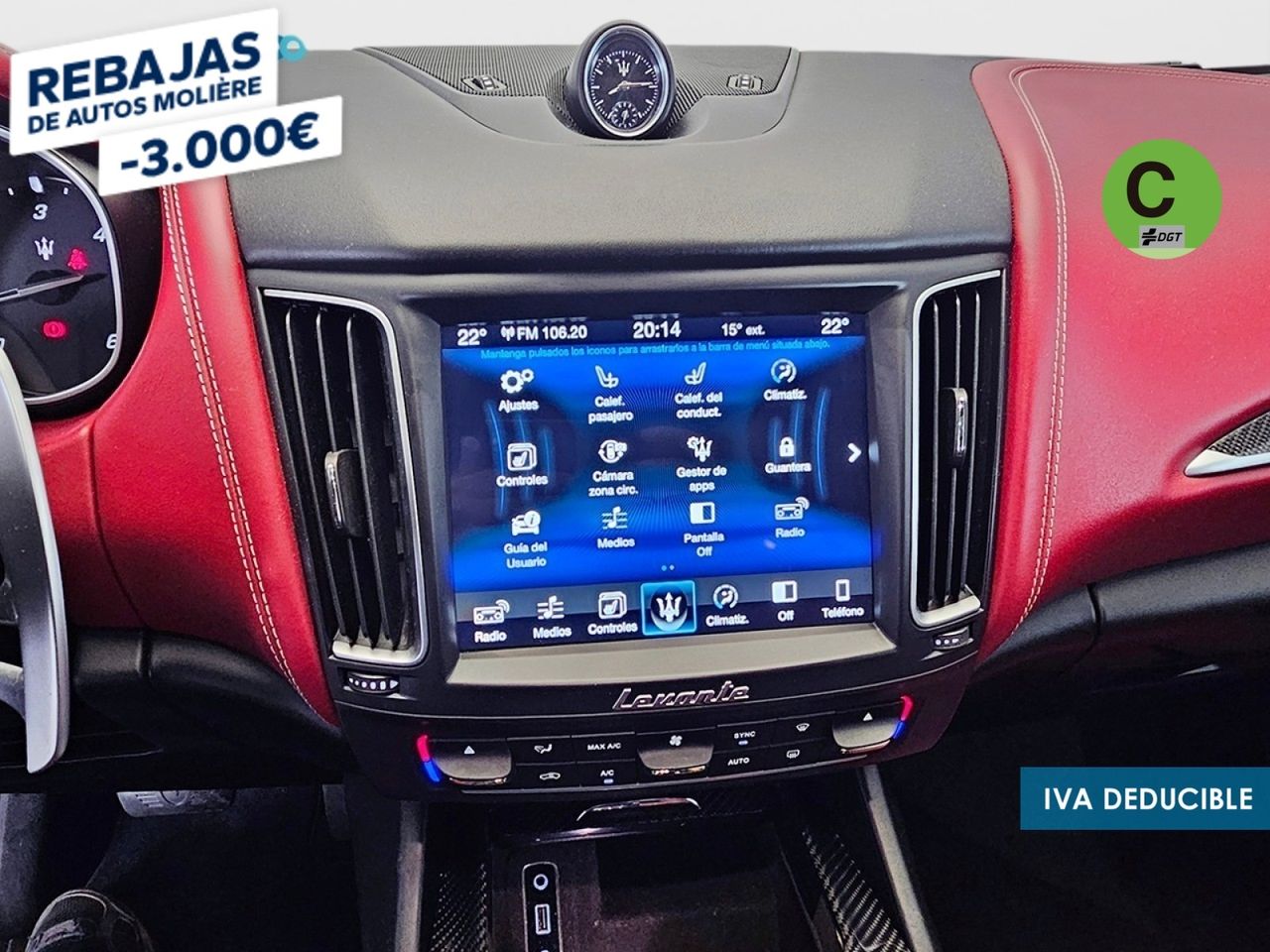 - Sistema multimedia Maserati Touch Control (incl. 8,4 Pulgada pantalla táctil en color, Reproductor de DVD, Ranura para t