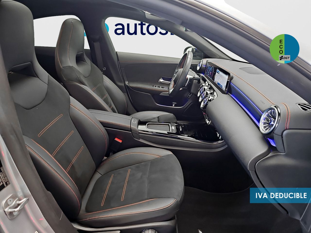 - Asientos de tela (material principal) y de cuero sintético (material secundario)