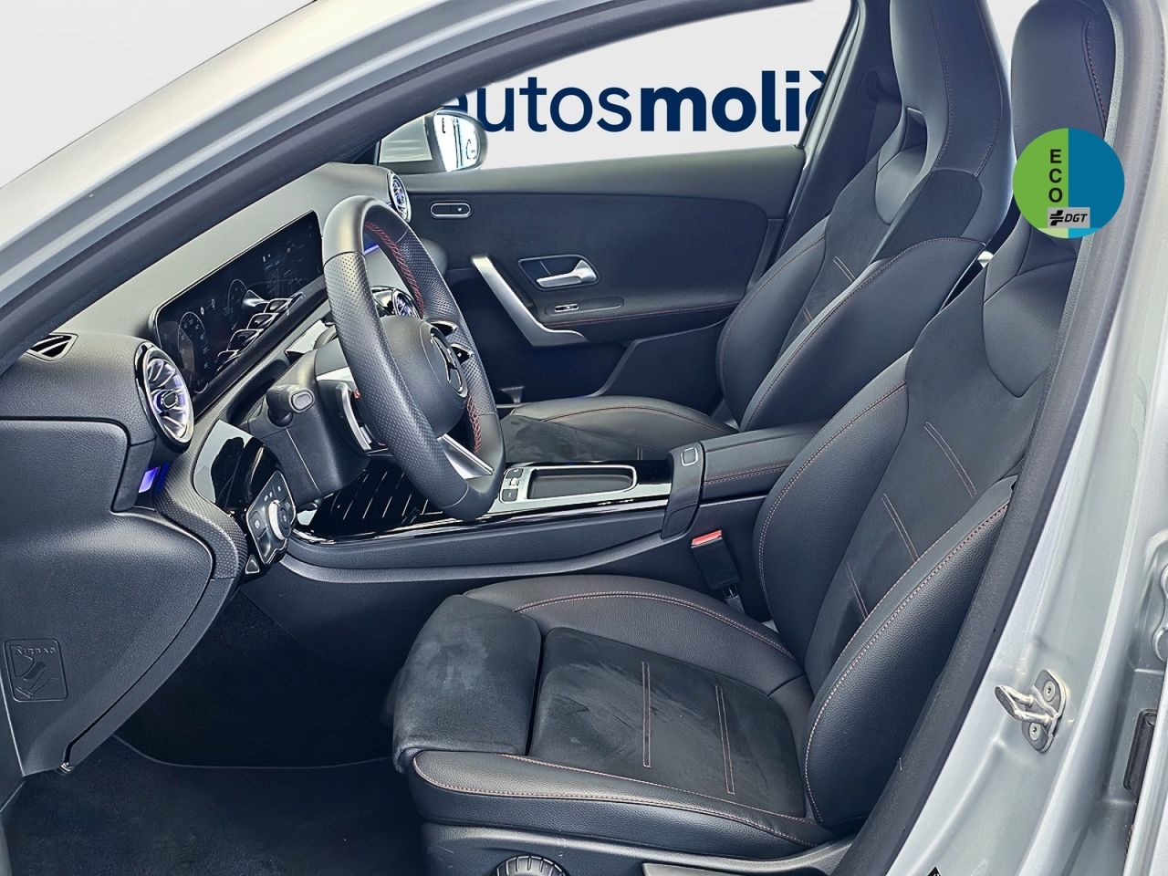 - Asientos de tela (material principal) y de cuero sintético (material secundario)