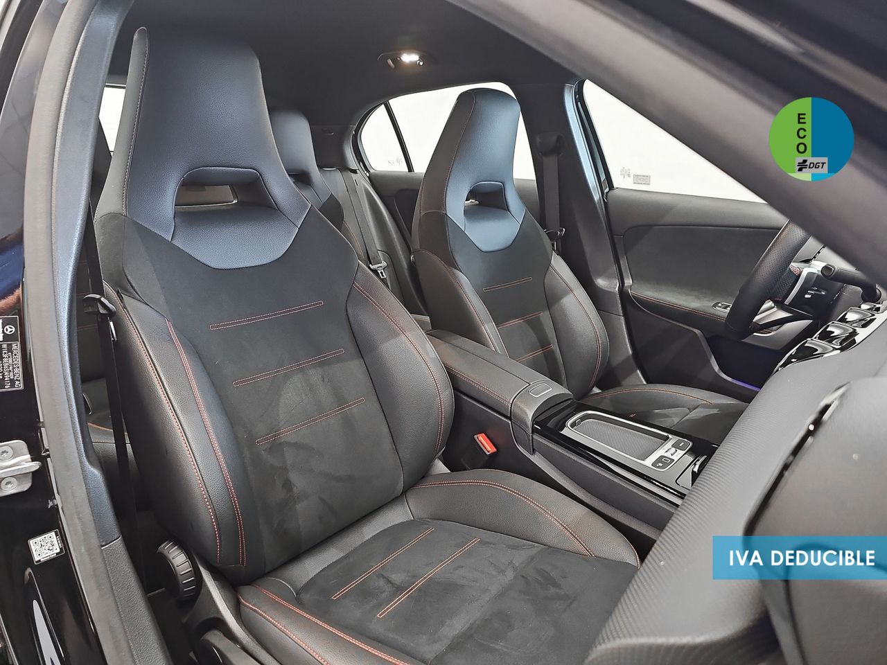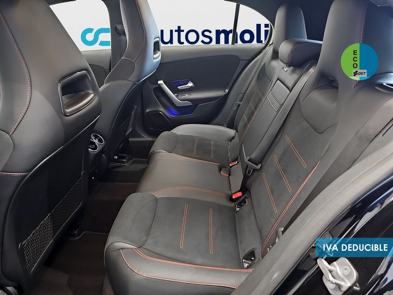 - Asientos de tela (material principal) y de cuero sintético (material secundario)