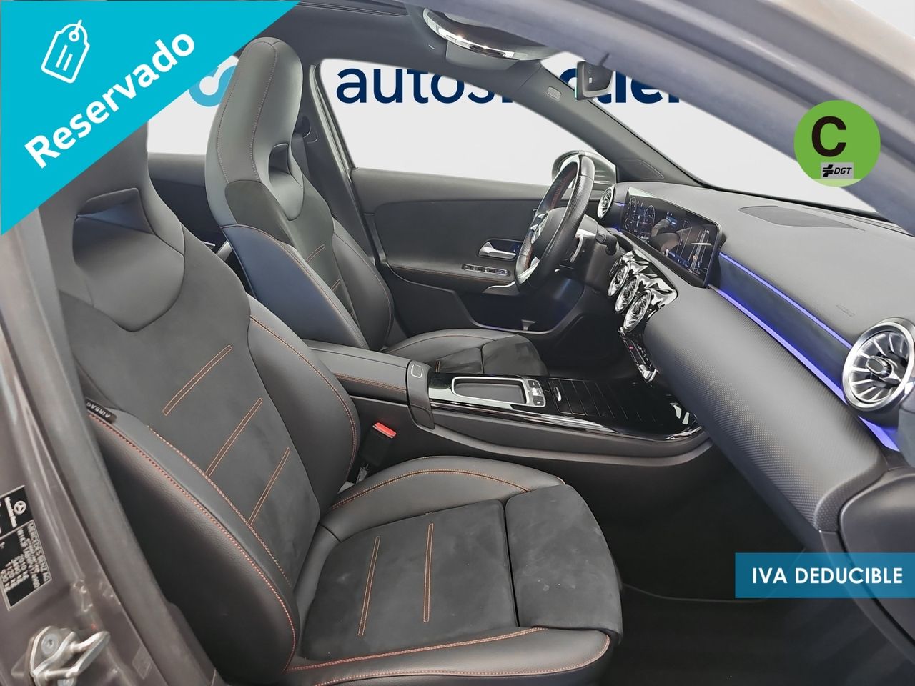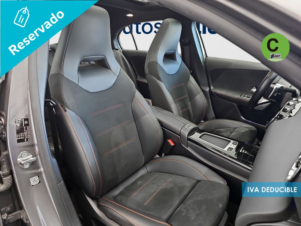 - Asientos de tela (material principal) y de cuero sintético (material secundario)
