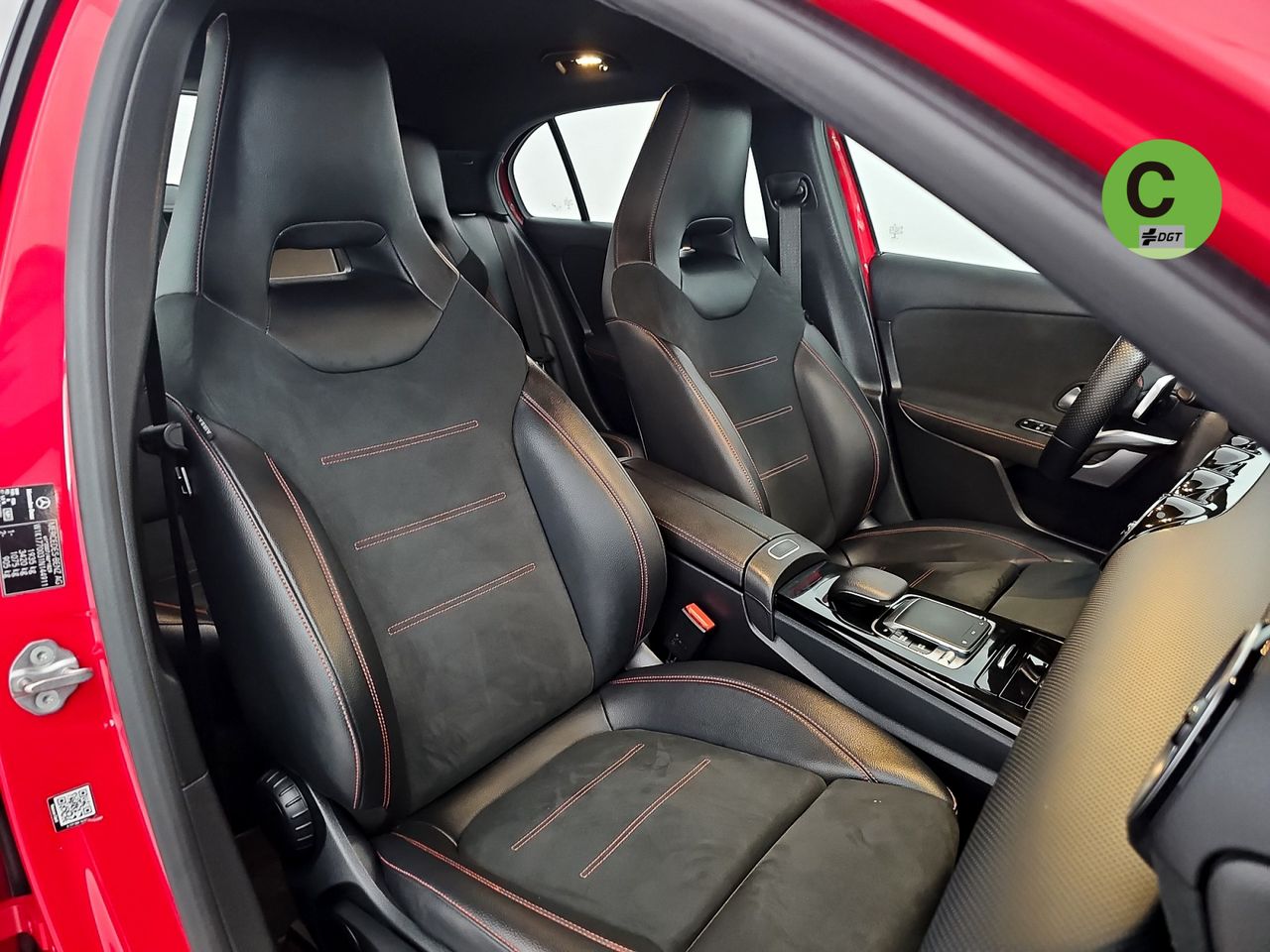 - Asientos de tela (material principal) y de cuero sintético (material secundario)