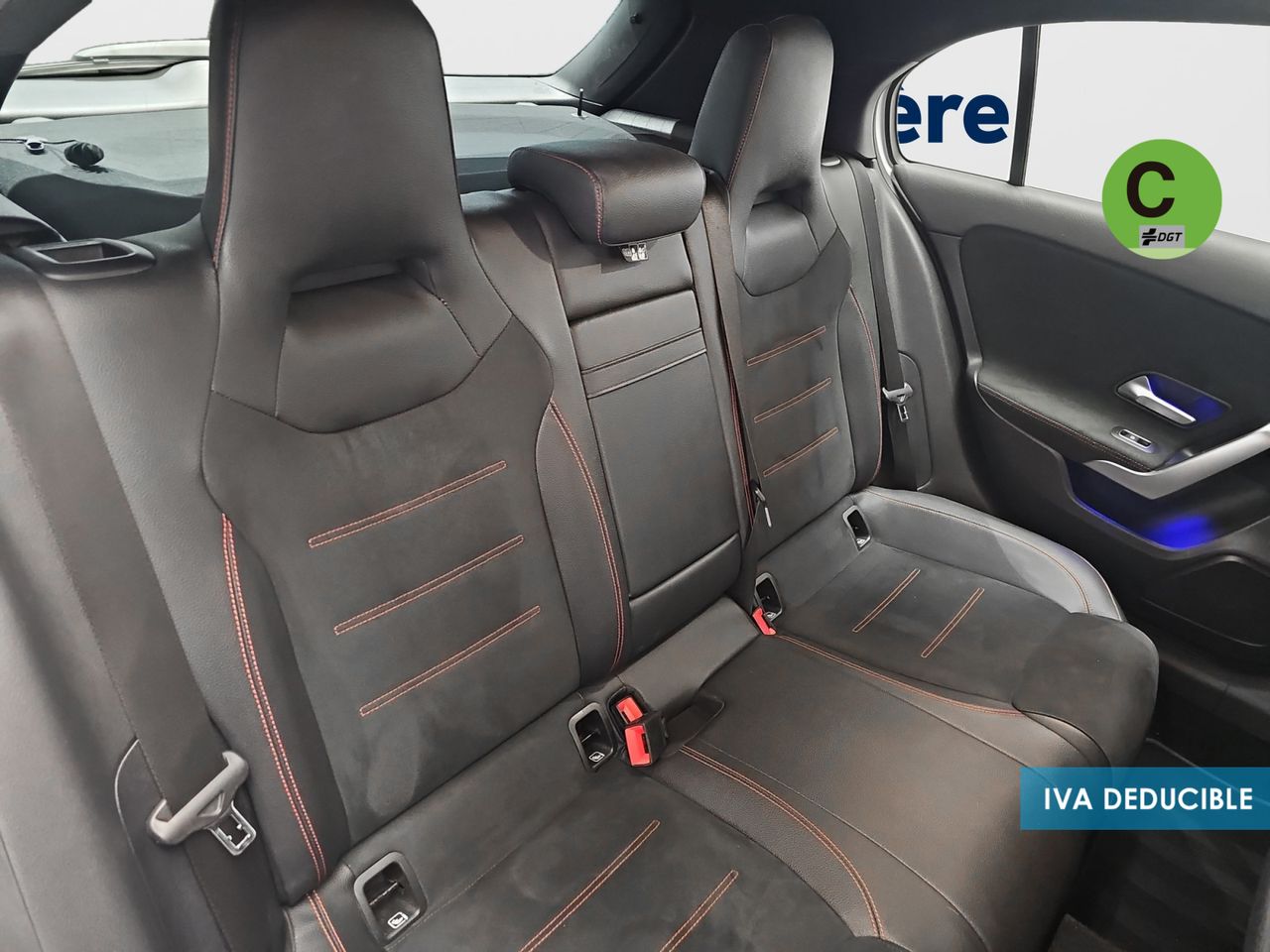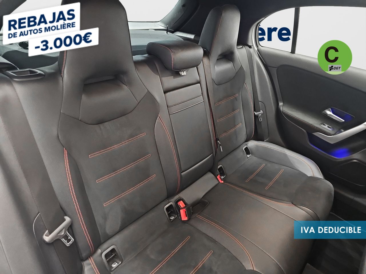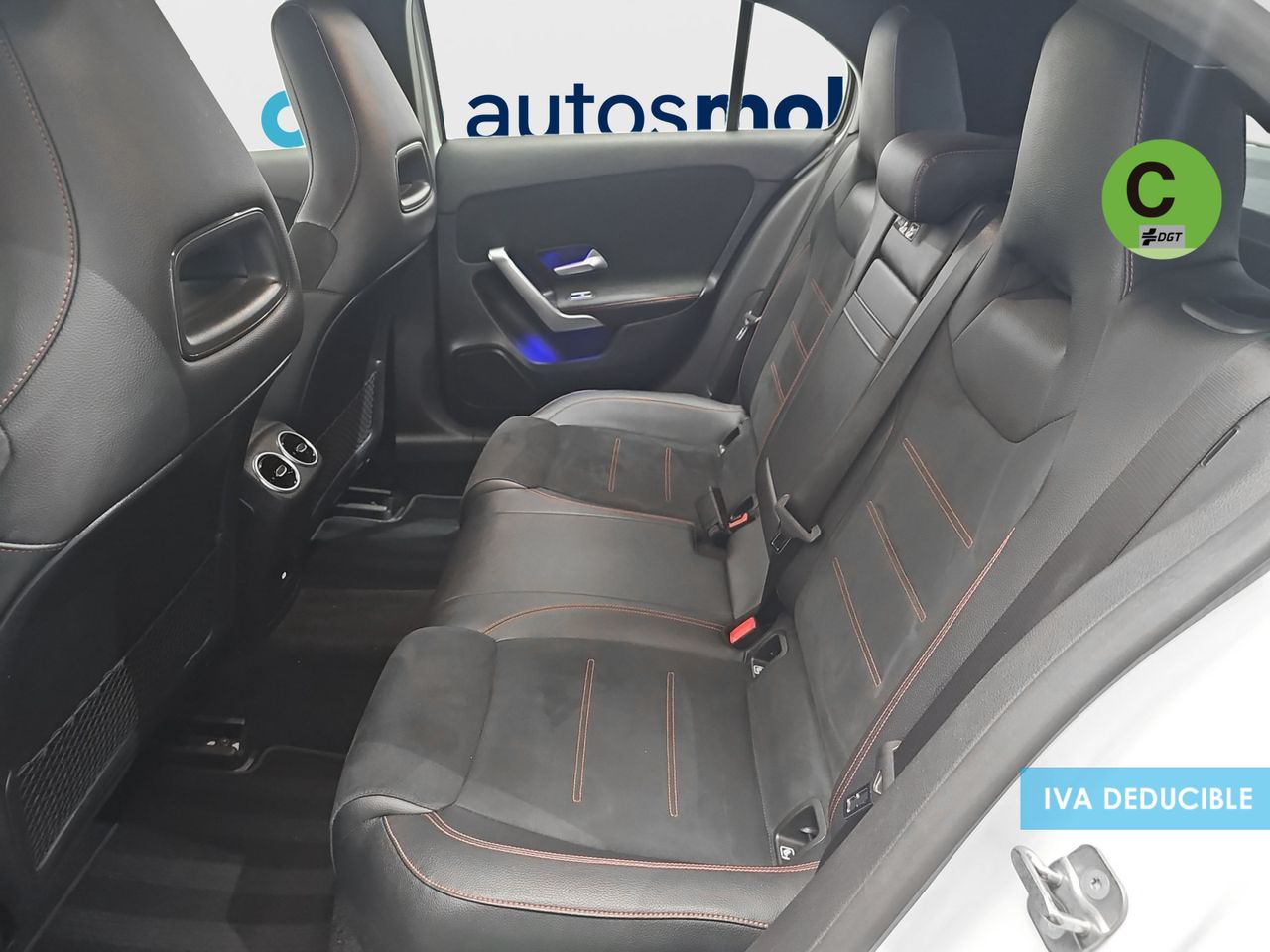 - Asientos de tela (material principal) y de cuero sintético (material secundario)