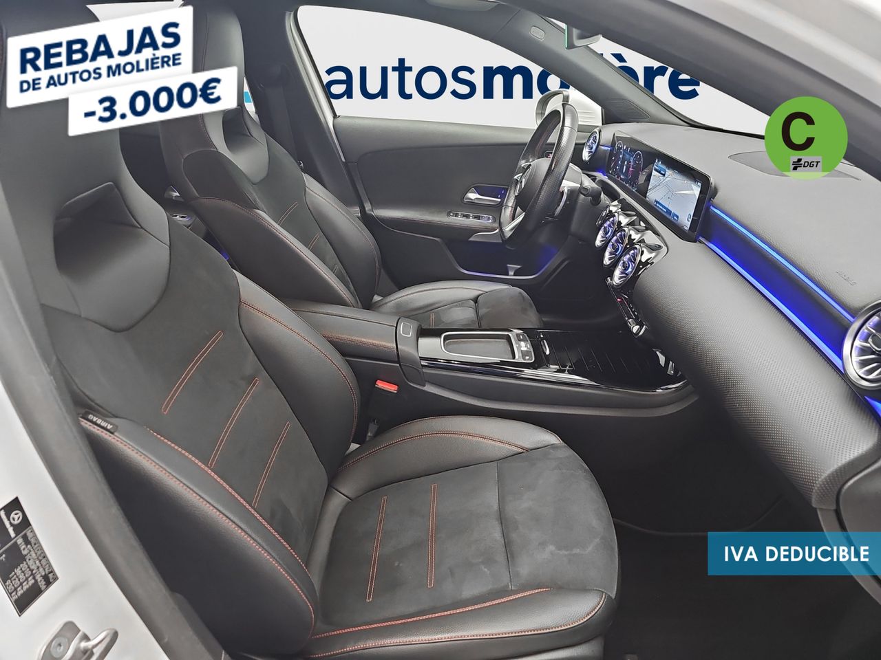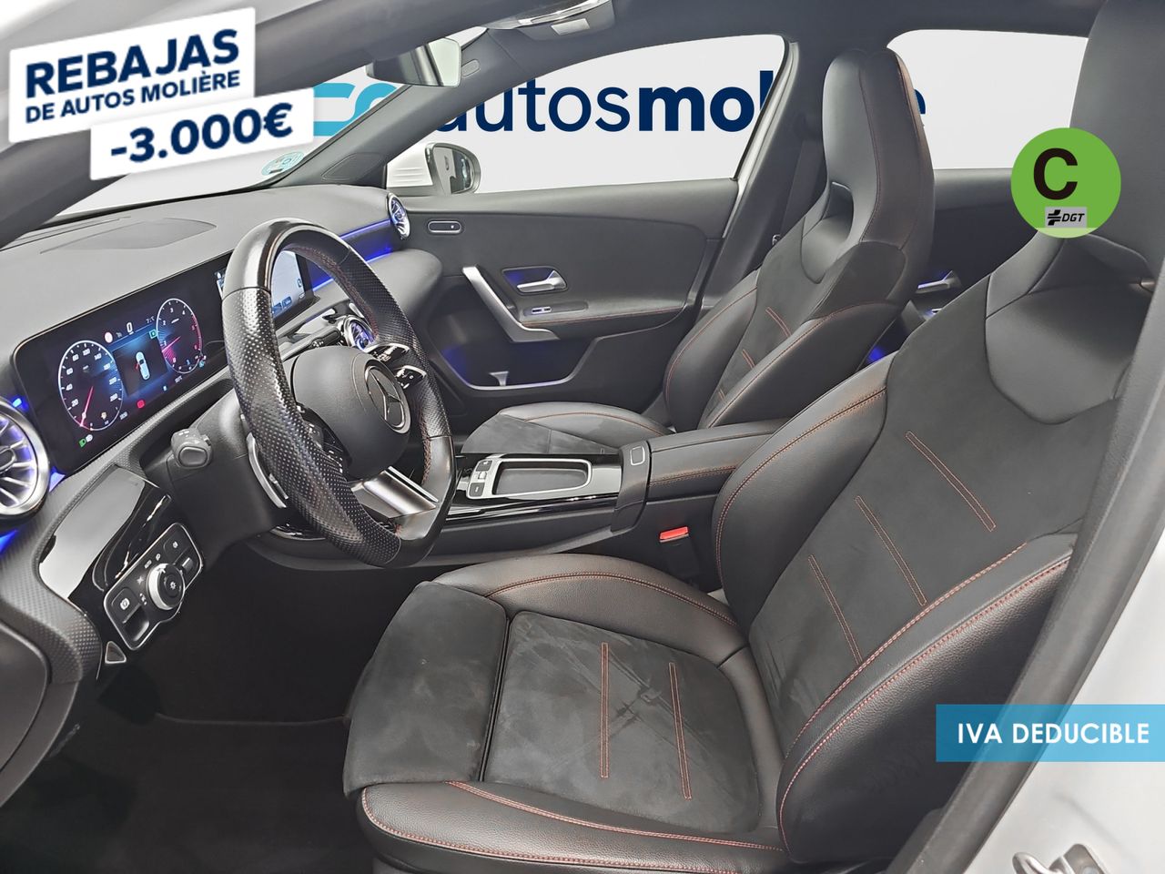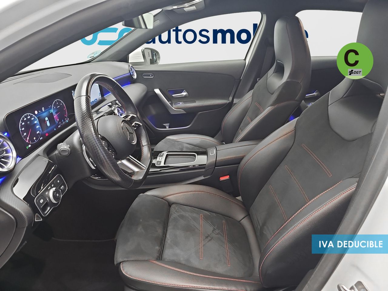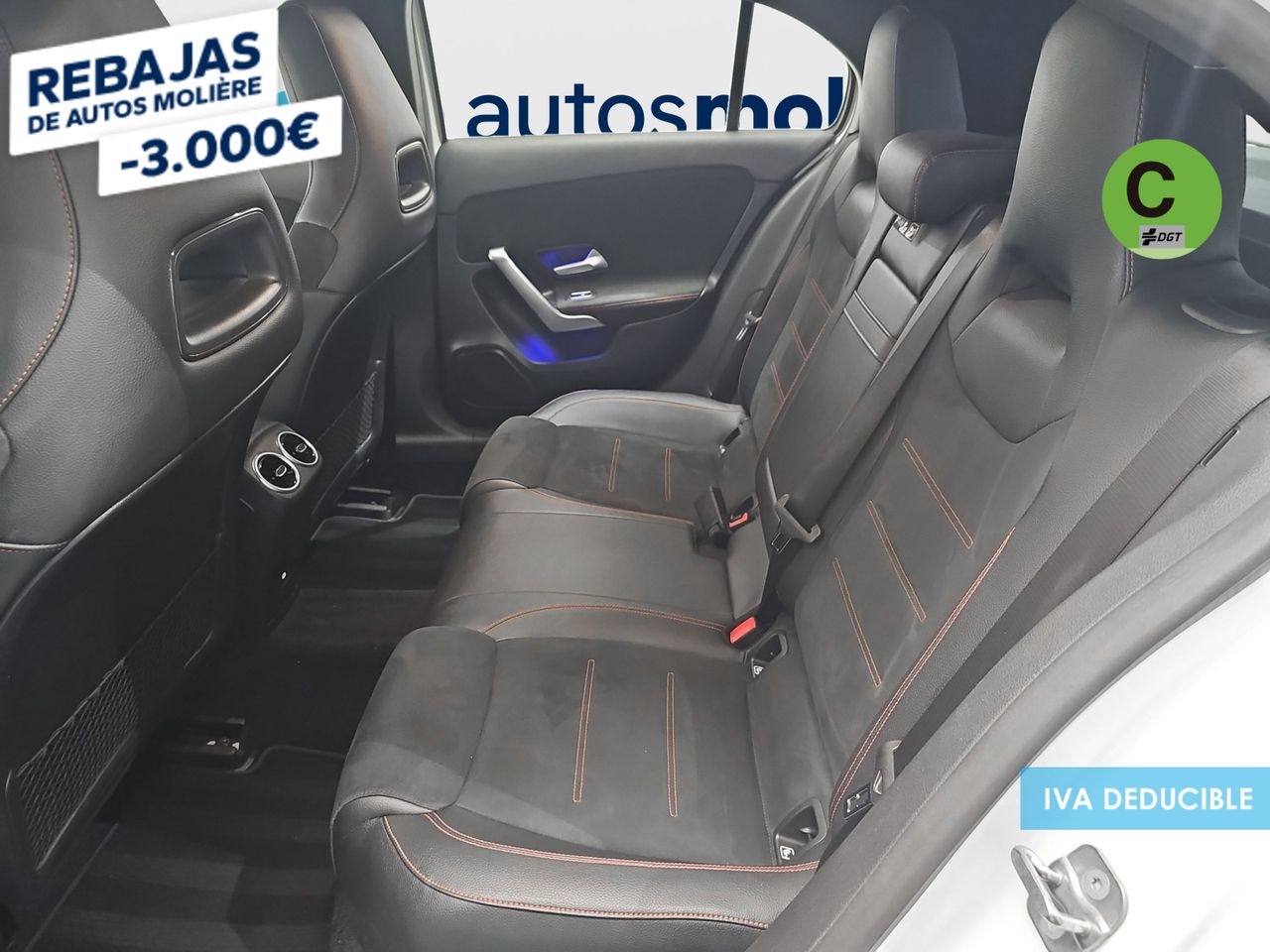 - Asientos de tela (material principal) y de cuero sintético (material secundario)