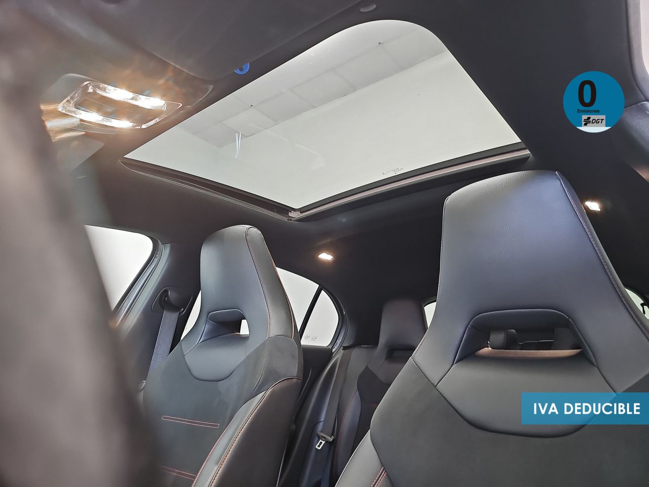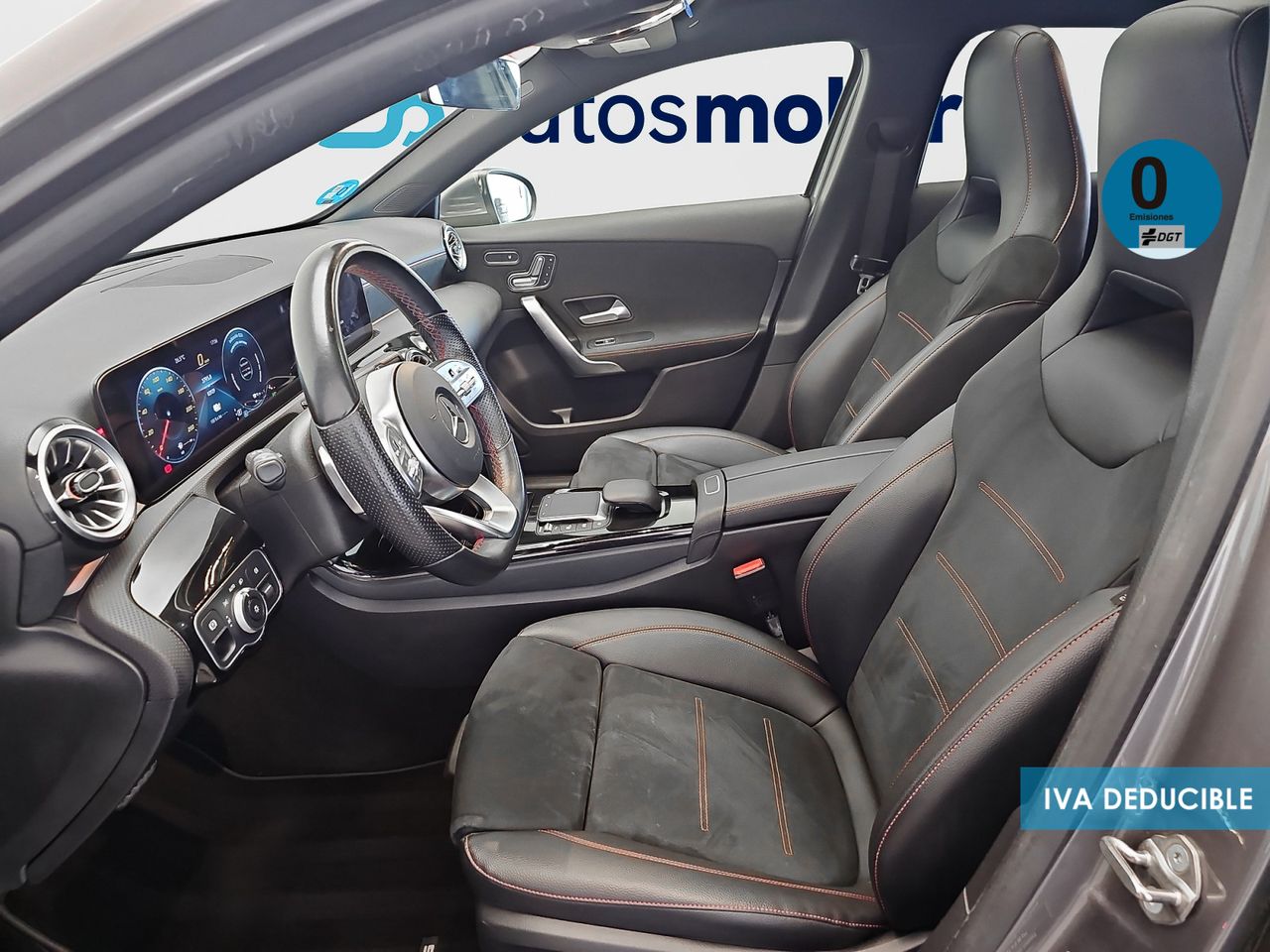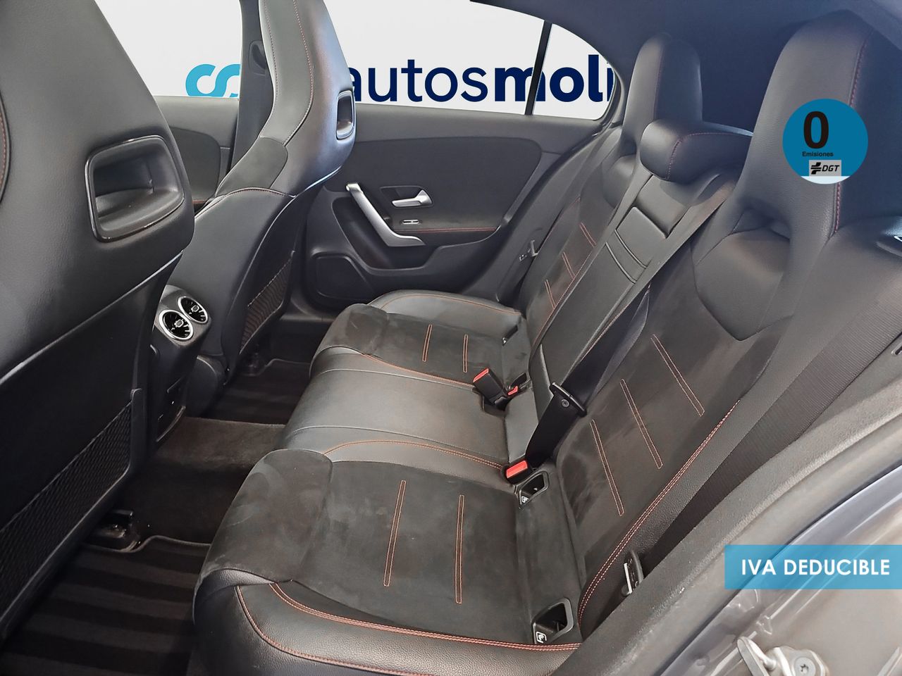 - Asientos de tela (material principal) y de cuero sintético (material secundario)