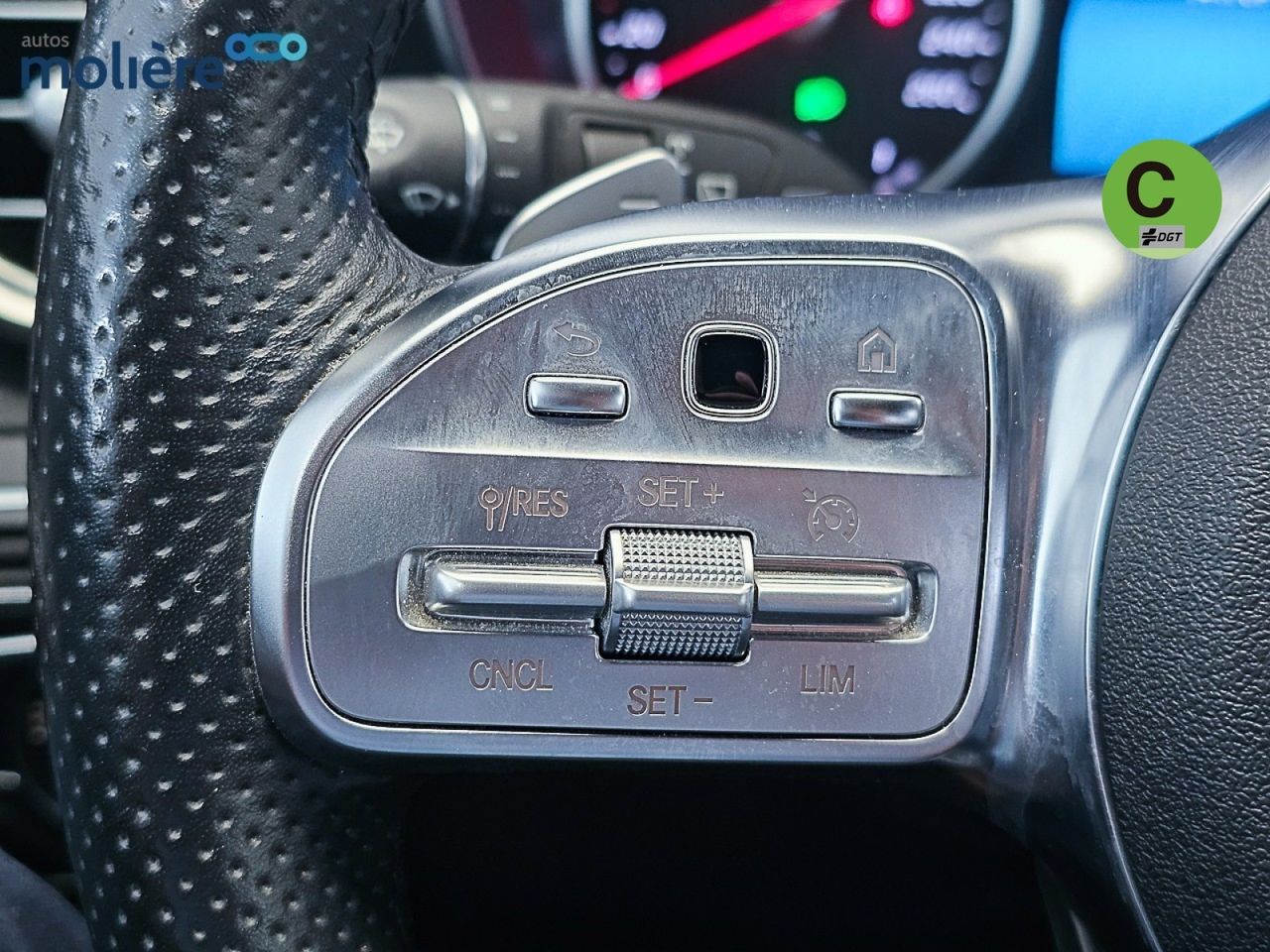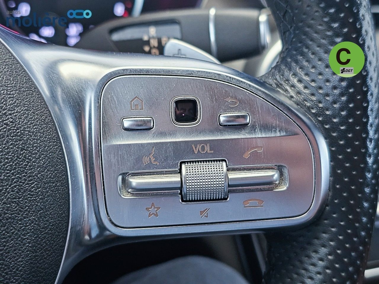 - Volante multi-función revestido de cuero ajustable en altura y en profundidad
