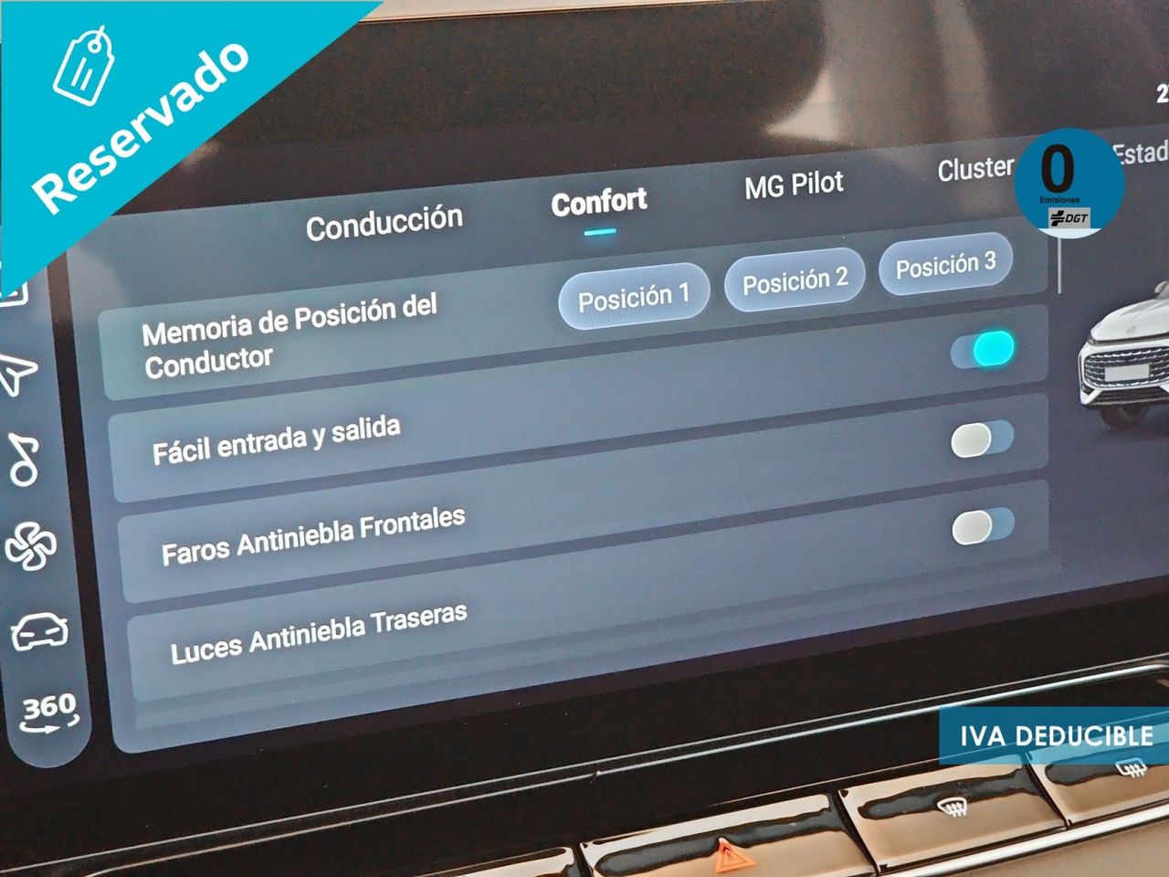 - Asiento delantero del conductor deportivo con ajuste eléctrico ( cinco ajustes eléctricos ) térmico, memorizado, memorizado y memorizado de dos posiciones con ajuste memorizado del respaldo, asiento delantero del acompañante deportivo con ajuste eléctrico ( dos ajustes eléctricos ) térmico y eléctrico con ajuste eléctrico del respaldo