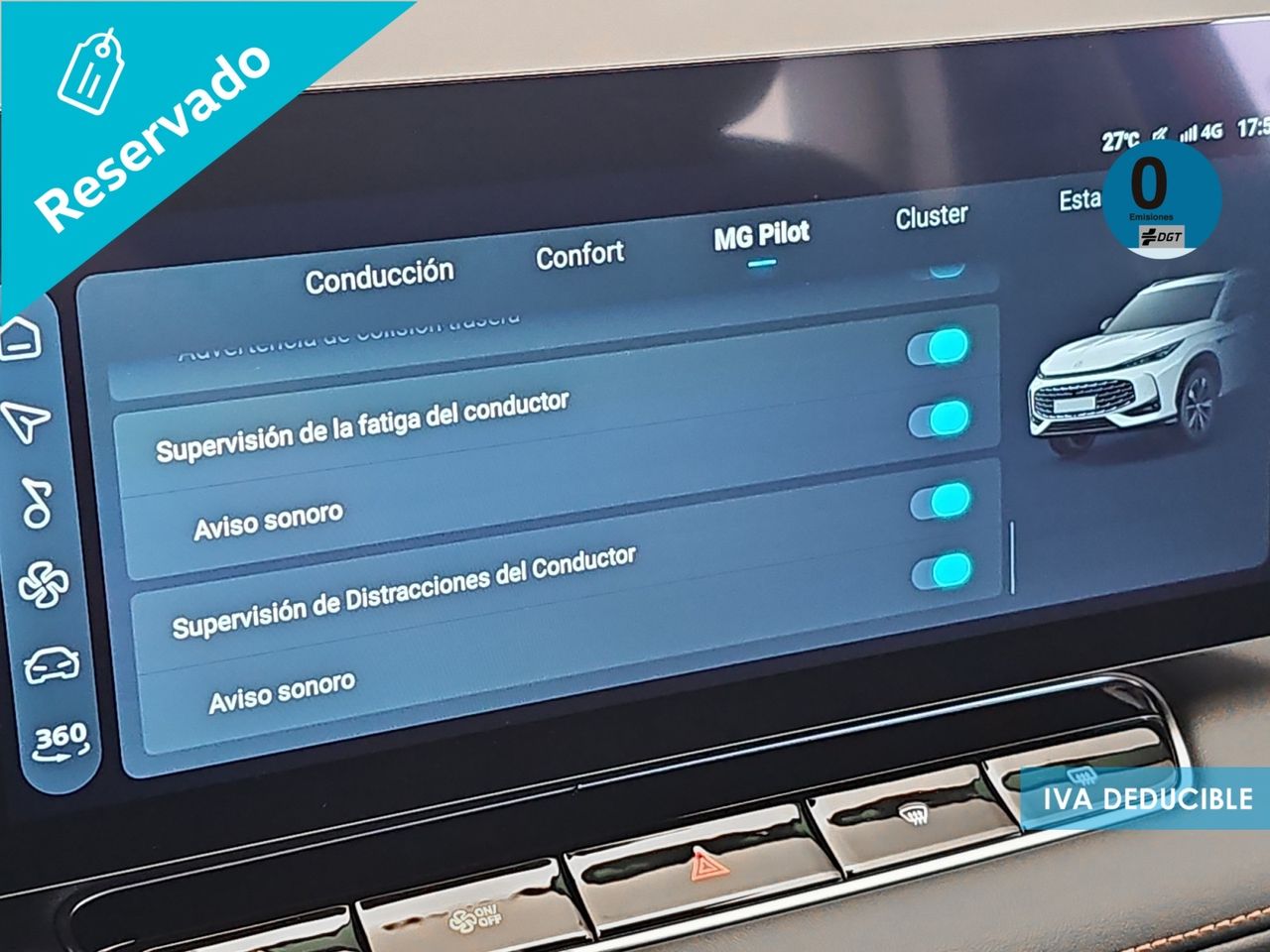 - Sistema de distancia de aparcamiento delanteros con sensor y cámara, sistema de distancia de aparcamiento traseros con sensor y cámara, sistema de distancia de aparcamiento en los lados con cámara