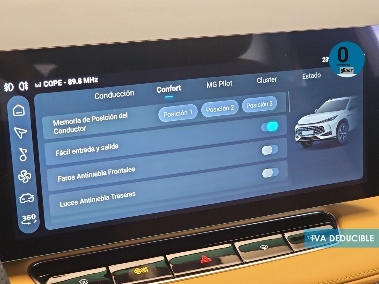 - Asiento delantero del conductor deportivo con ajuste eléctrico ( cinco ajustes eléctricos ) térmico, memorizado, memorizado y memorizado de dos posiciones con ajuste memorizado del respaldo, asiento delantero del acompañante deportivo con ajuste eléctrico ( dos ajustes eléctricos ) térmico y eléctrico con ajuste eléctrico del respaldo
