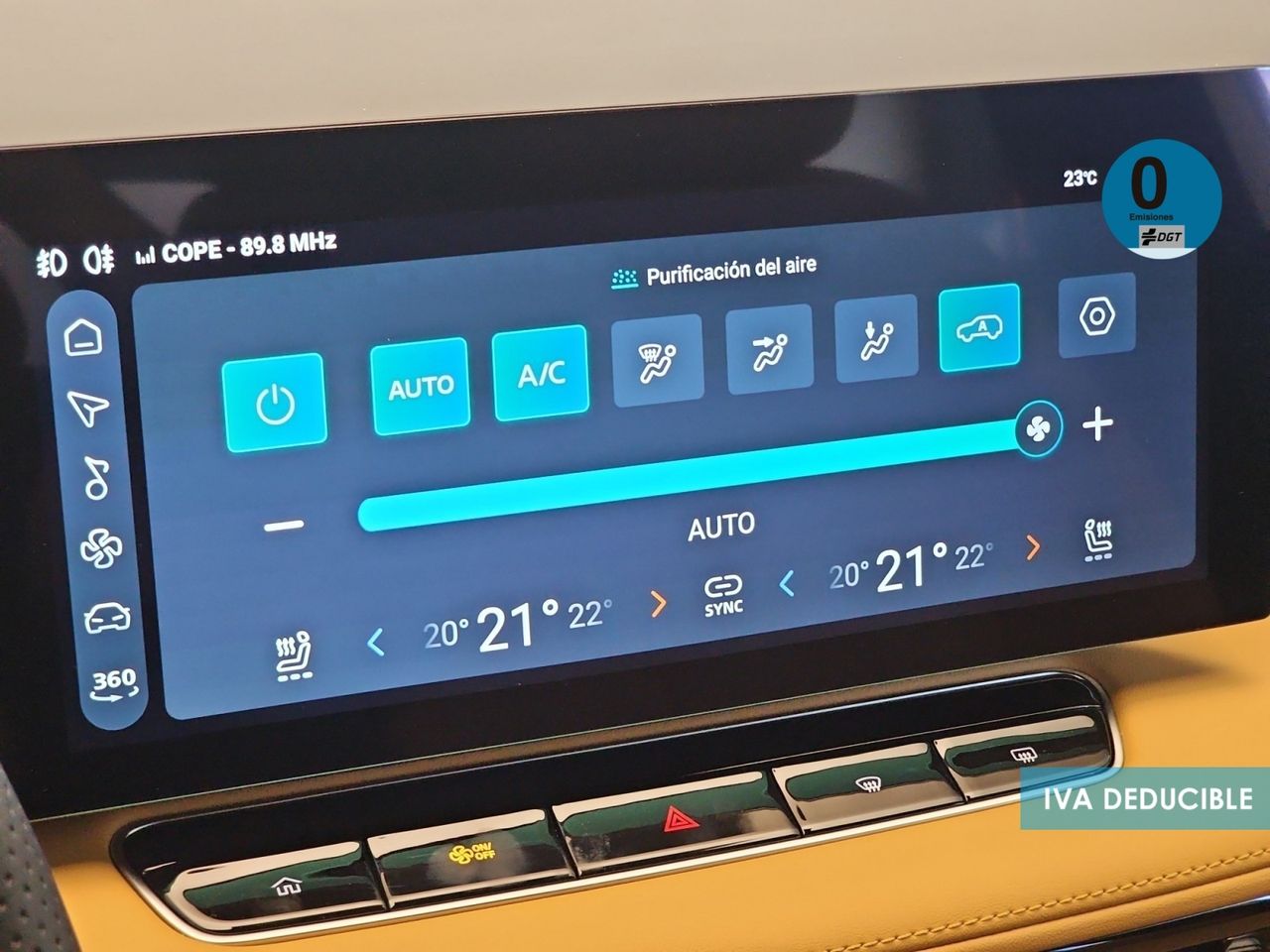 - Sistema de ventilación con filtro de carbón activo controles en pantalla táctil y calefacción del motor