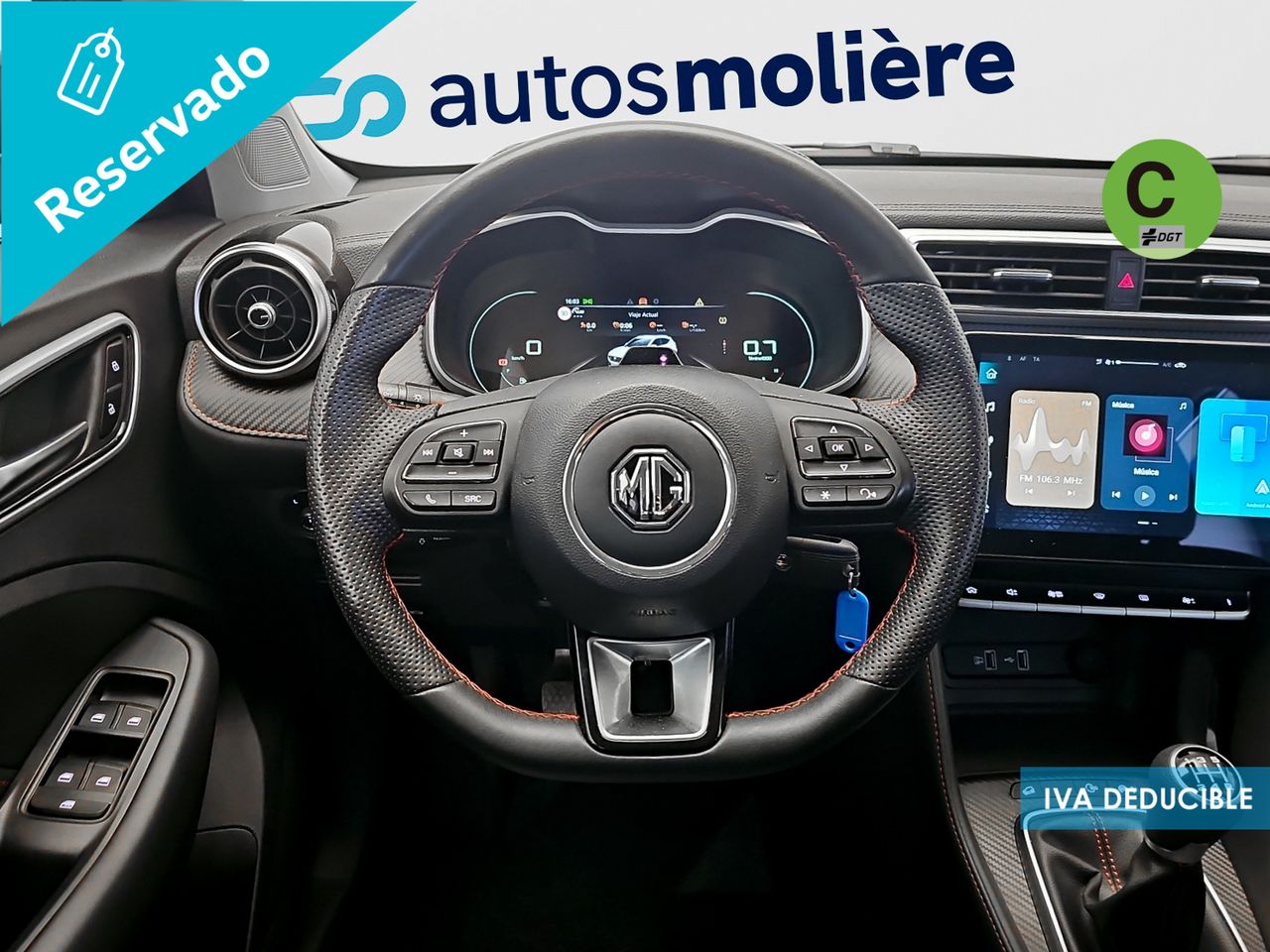 - Acabados de lujo: pomo de la palanca de cambios en símil aluminio, consola central en símil fibra de carbono, puertas en símil aluminio y tablero en símil aluminio