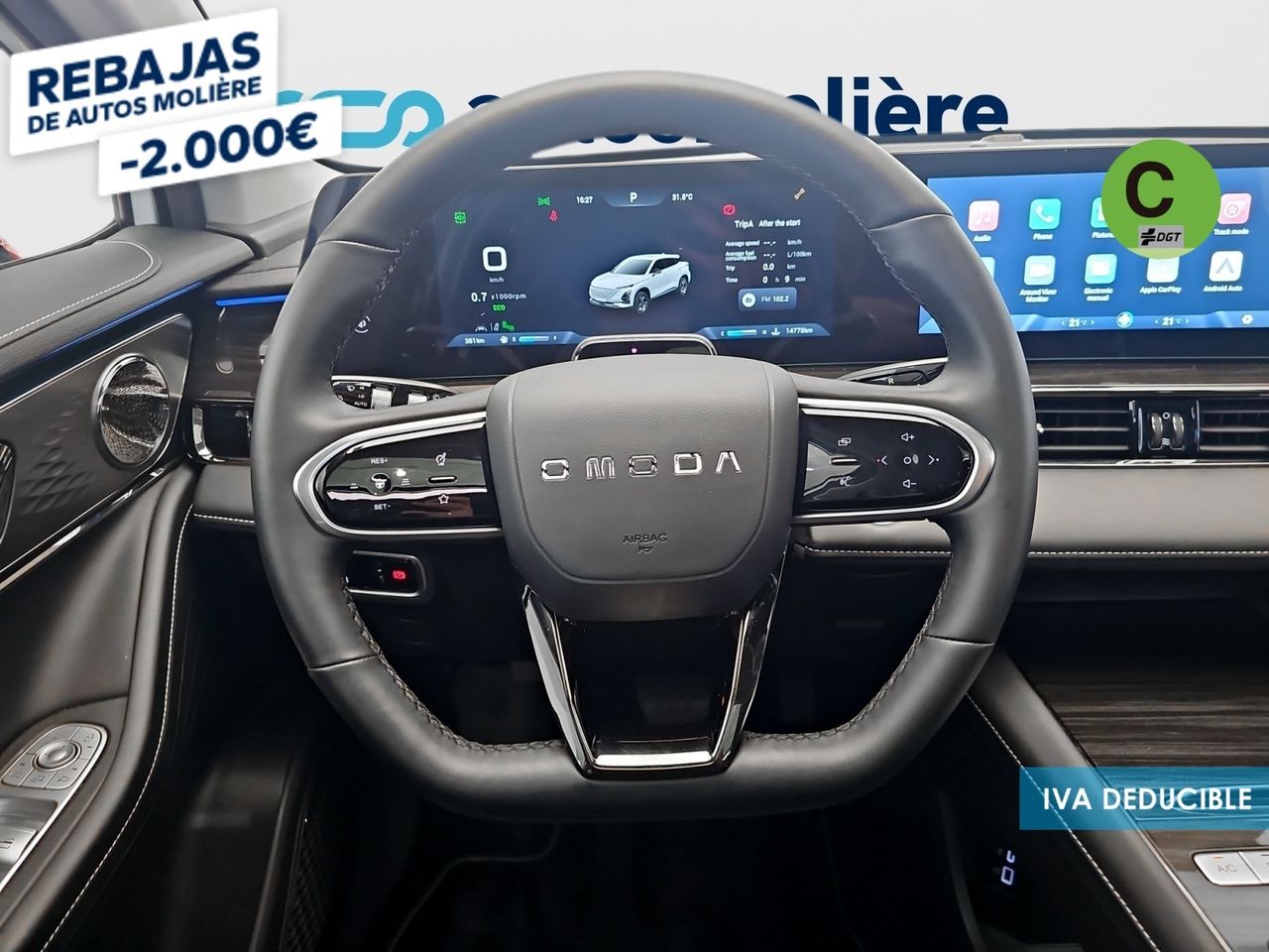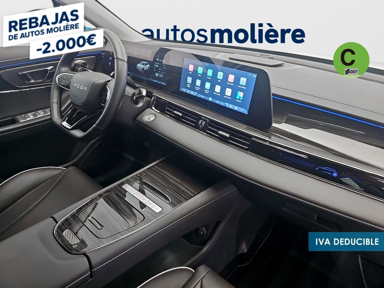 - Acabados de lujo: consola central en negro piano, puertas en cuero sintético y tablero en aluminio y cuero sintético