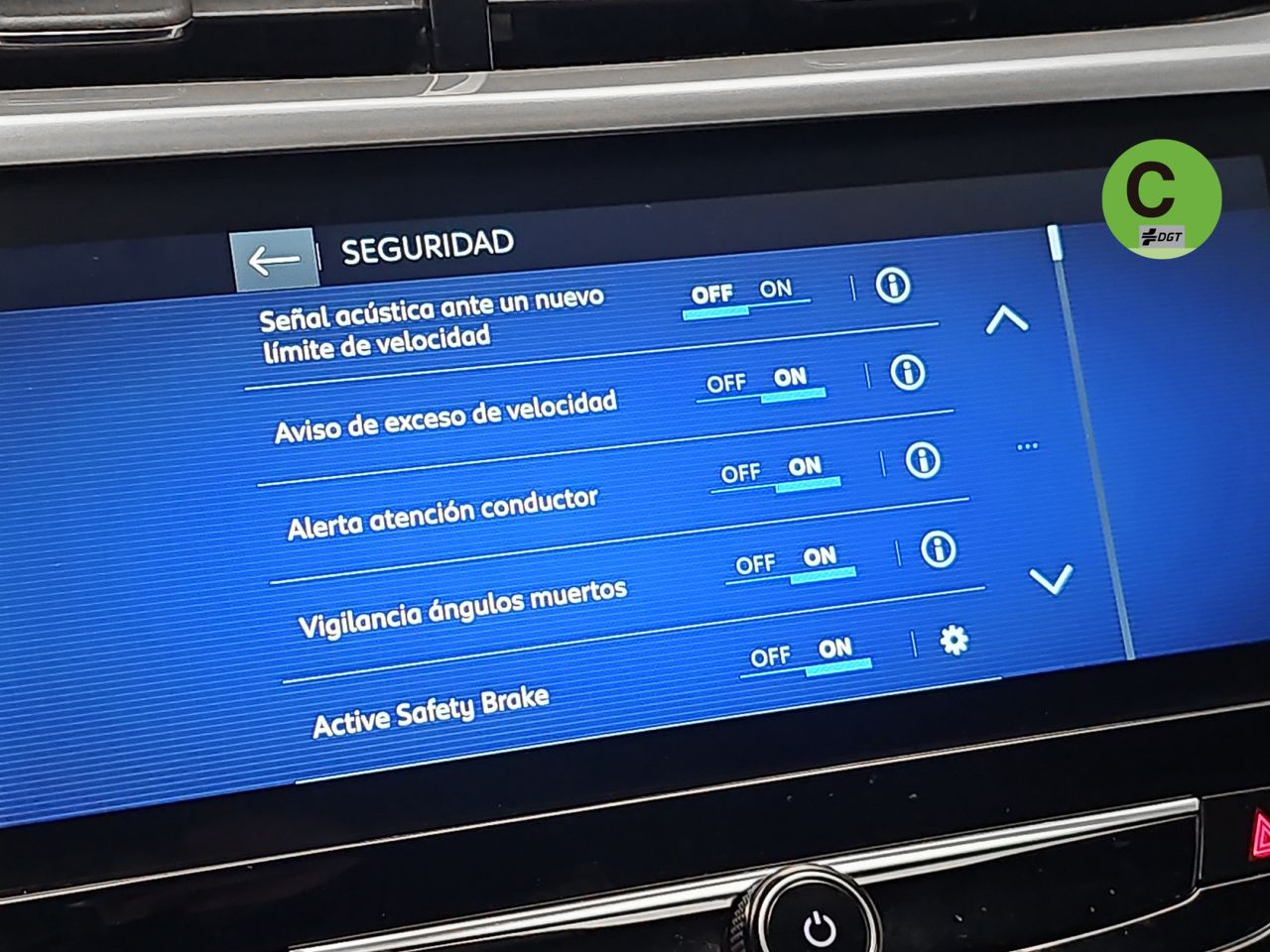 - Regulación de los faros con ajuste de altura manual, sensor de oscuridad y sensor de vehículos en sentido contrario