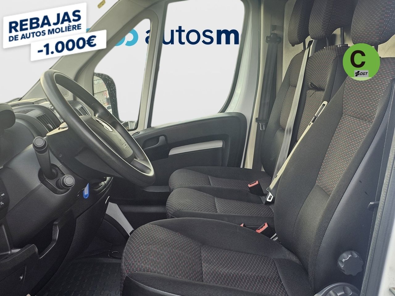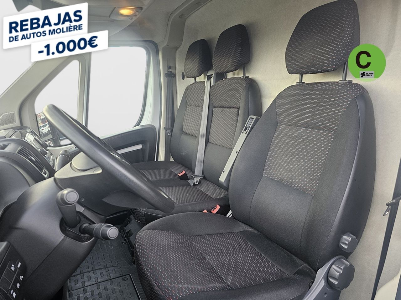 - Asiento delantero del conductor individual, ajuste longitudinal manual y ajuste manual en altura con ajuste manual del respaldo, asiento delantero del acompañante tipo banco, asiento delantero central tipo banco