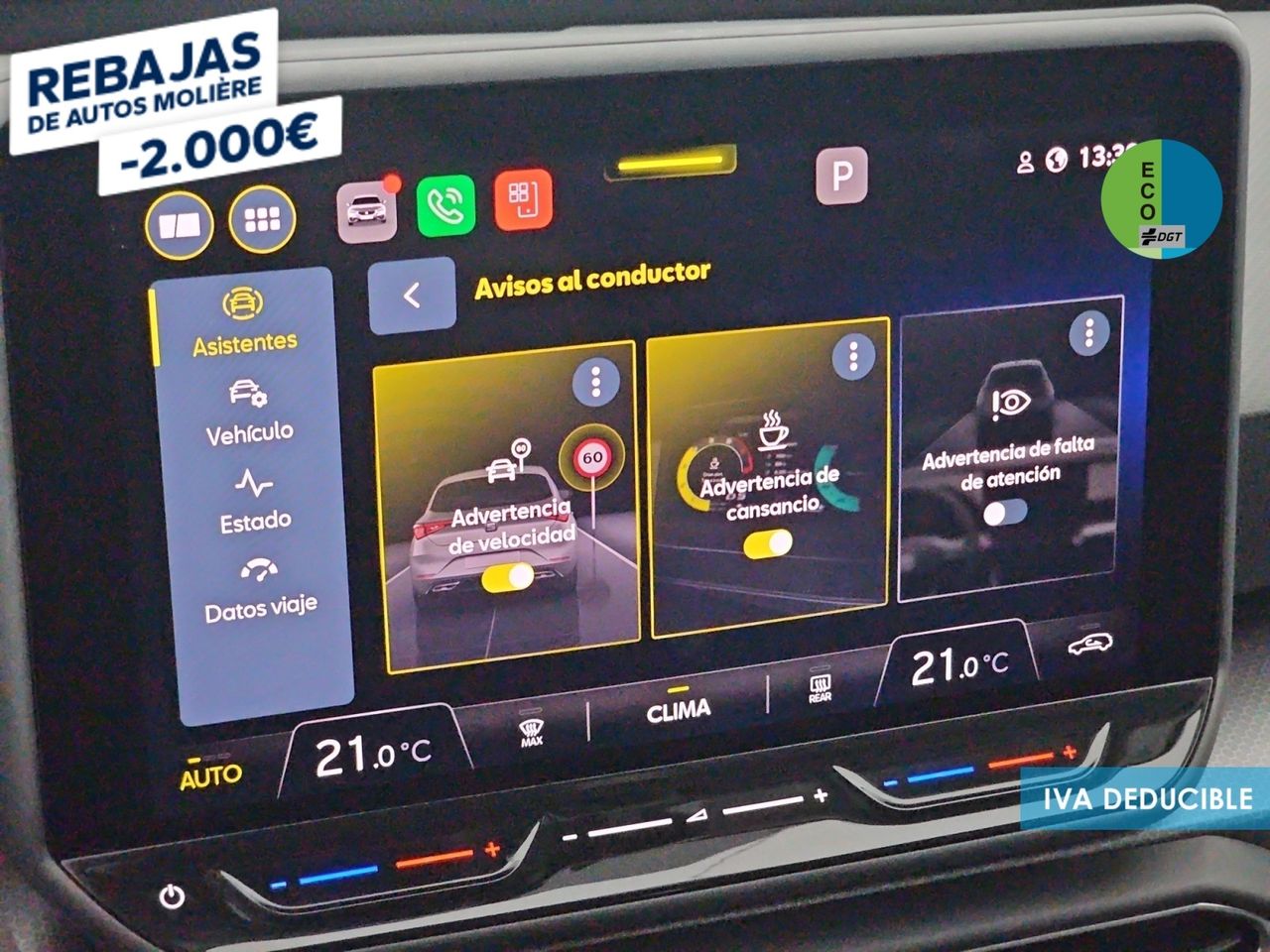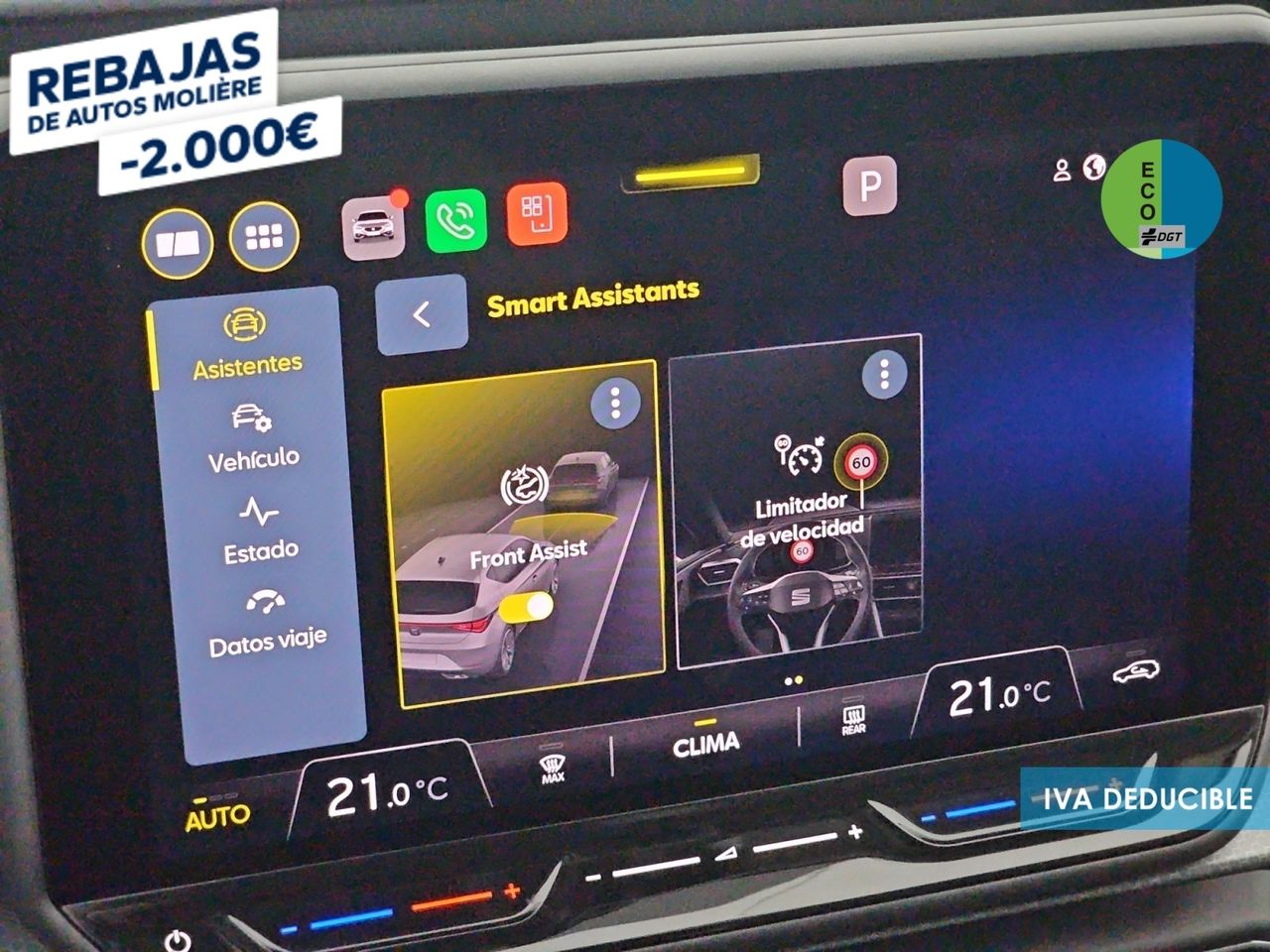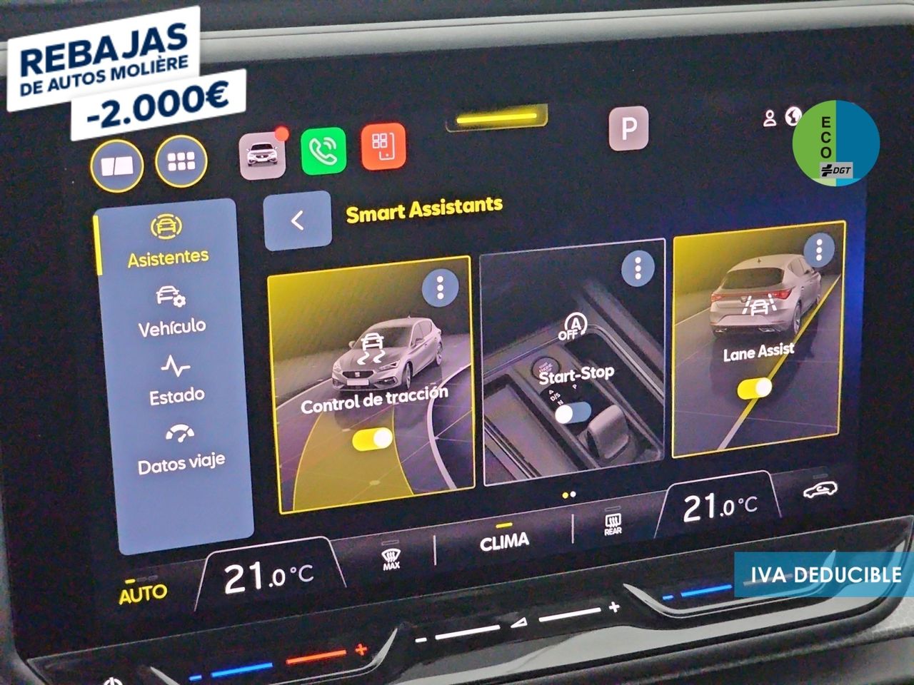 - Sistema de ventilación con pantalla digital, filtro de pólen y filtro de carbón activo controles en pantalla táctil y calefacción del motor
